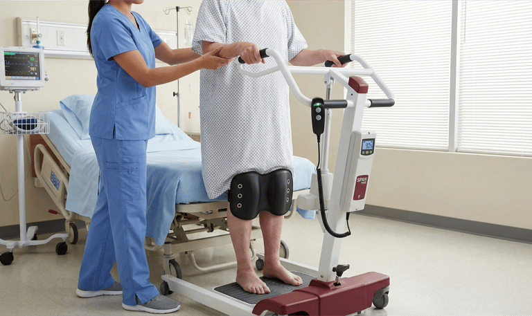 Skilled nursing facilities, assisted living communities, rehabilitation centers, and any facility requiring a powered sit-to-stand lift for safe, efficient patient transfers.