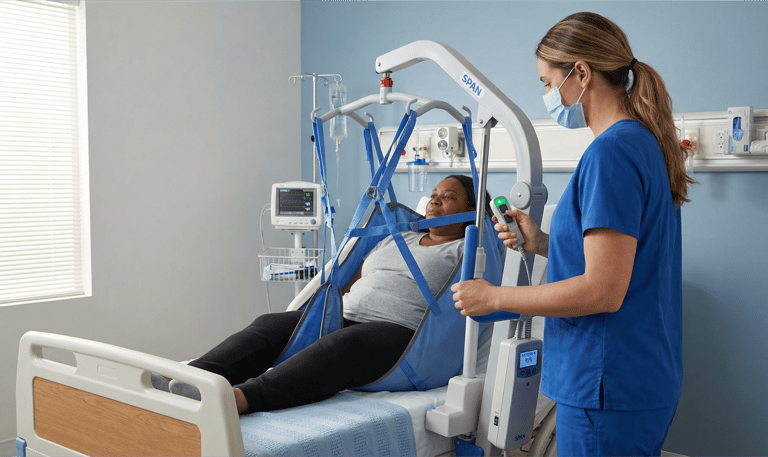 The F600B is SPAN's bariatric full body lift, engineered for patients requiring maximum assistance with higher weight capacity. It delivers 600 lb capacity with advanced range, mobility, and durability—designed specifically for bariatric and complex patient populations while maintaining ease of use and value.